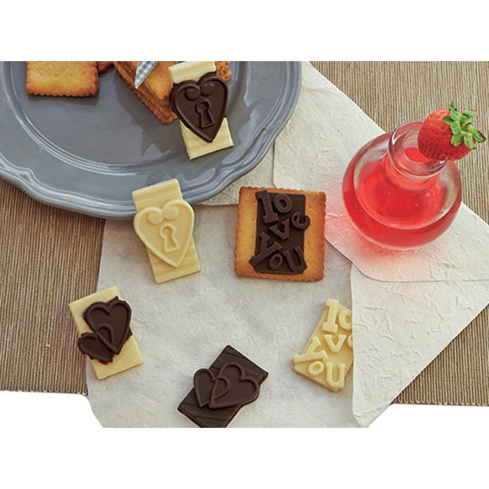 Szeretné szerelmét eredeti, édes és ízletes módon kinyilvánítani? Tegye ezt a Choco Tags in love, a Silikomart Easy Choc Line szuper romantikus formájával, amellyel édes szerelmes idézeteket, szíveket és sok más formát készíthet! Ennek a formának köszönhetően tizenhat ízletes csokoládét készíthetsz sütemények díszítésére. Az elkészítés gyerekjáték lesz a minden édességhez mellékelt receptnek köszönhetően! Mérete:300mm x 175mm x 9mm.